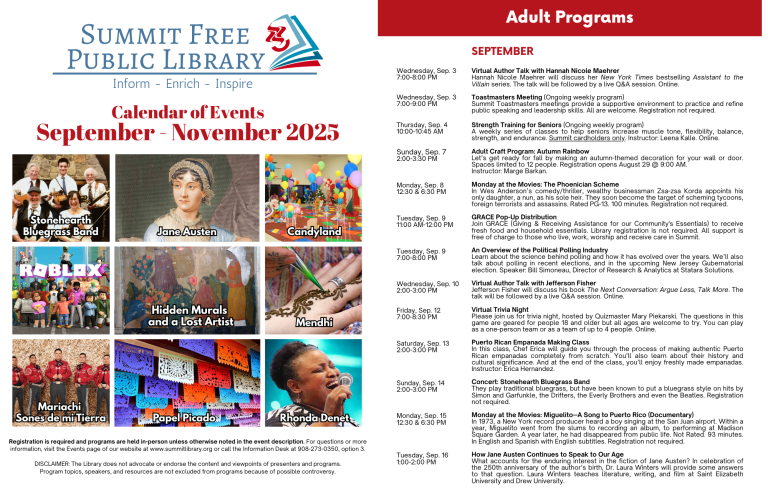 Click here to access and save or print our full September - November 2025 Calendar.